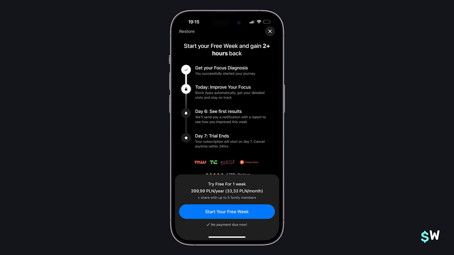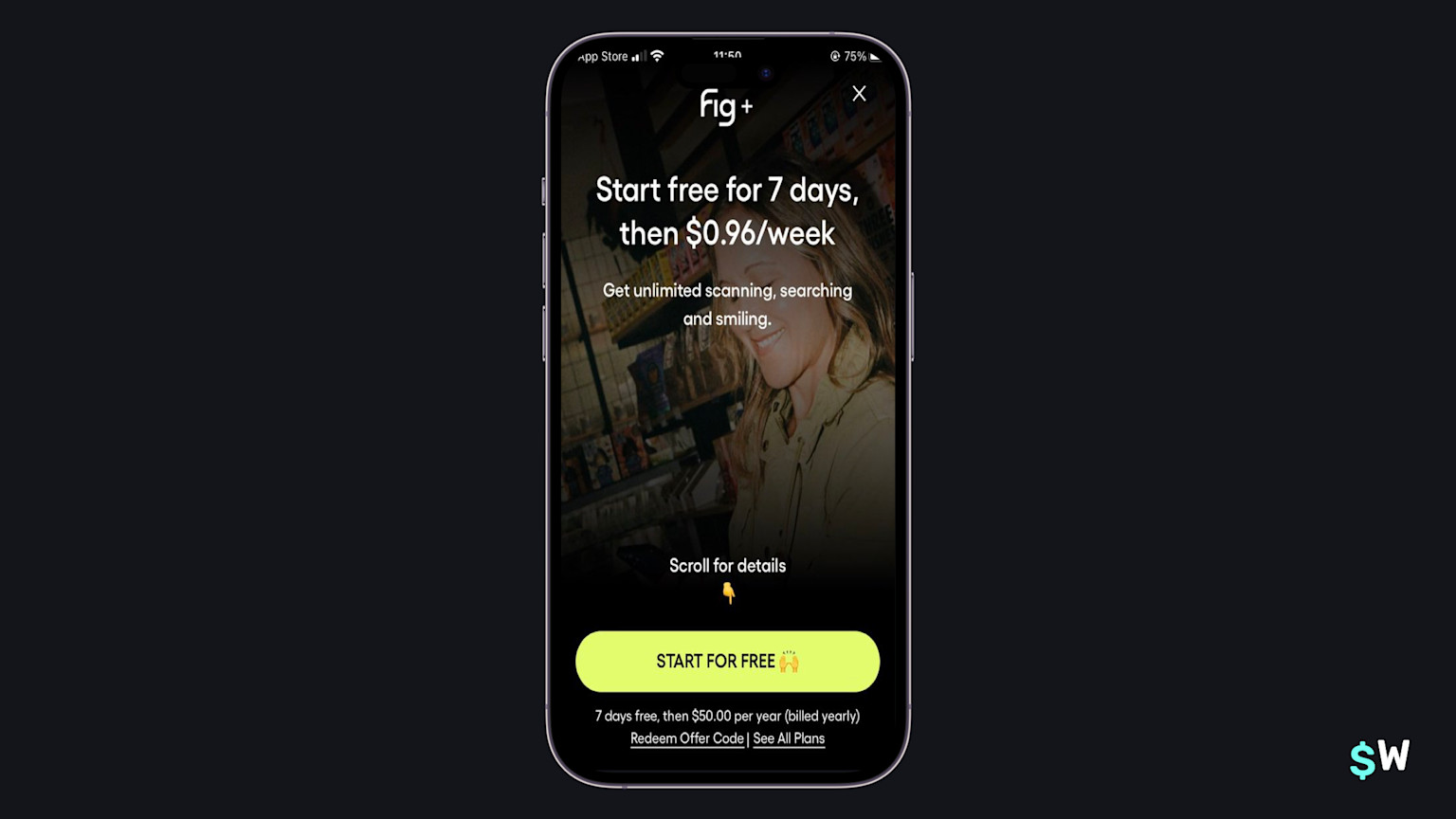 Fig approaches its paywall a bit differently, and I believe it can because of its product positioning. It simply states the trial terms, and the price of one week. Below that is simply one sentence explaining its benefits. Why can they do this? Because most of the folks who come to Fig probably already have an idea of its value add, but either way — scrolling down presents more details.