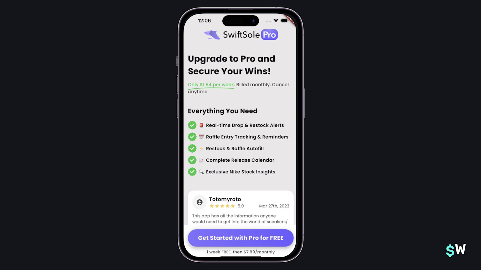 It sounds simple, but it's true — simply emphasizing the word "free" can work wonders. SwiftSole takes that to heart in its call-to-action, which has "free" capitalized. Some more touches include showing the selected plan's price in weekly terms at the top, as well as a nice section of social proofs by way of user reviews.
